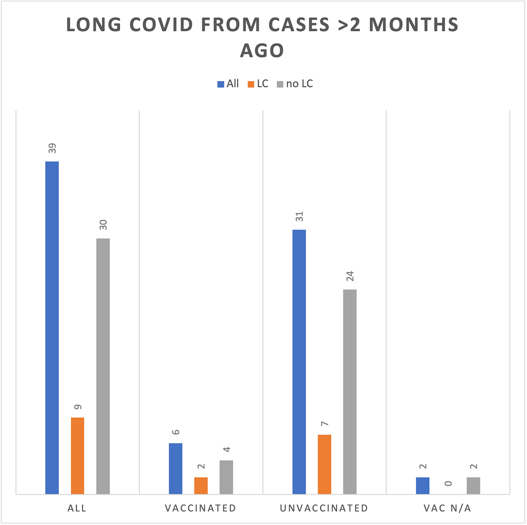 - For vaccinated cases, the rate of long covid was about the same as for unvaccinated